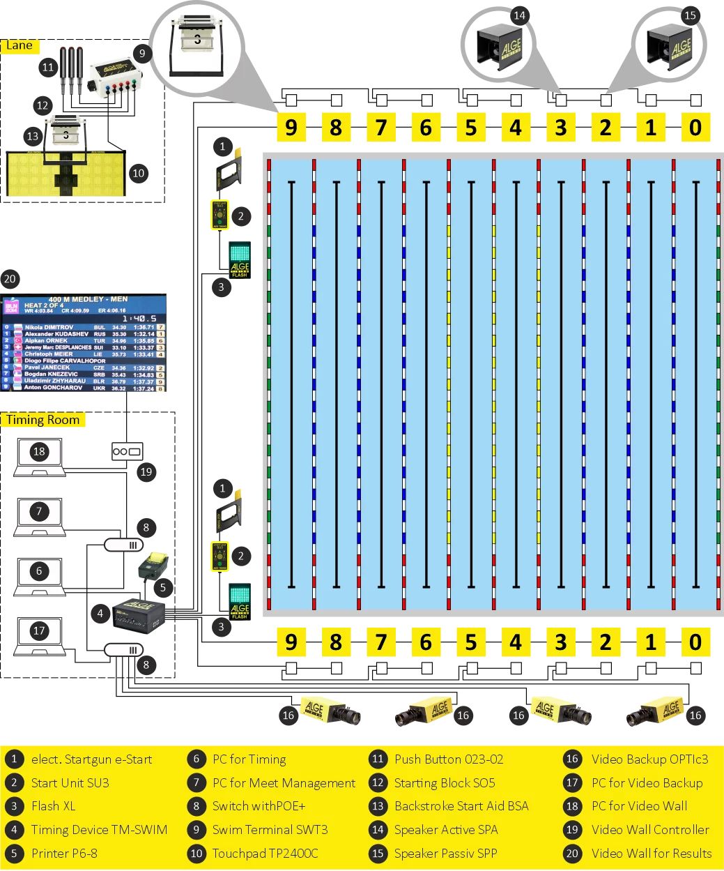 Ofrecemos soluciones de alta precisión para competiciones y entrenamientos en atletismo, ciclismo, patinaje, deportes de invierno, motor, natación y más. Nuestros dispositivos incluyen desde Photofinish, fotocélulas y sistemas completos de cronometraje para natación (touchpads patentados), hasta displays, software de gestión y marcadores LED.