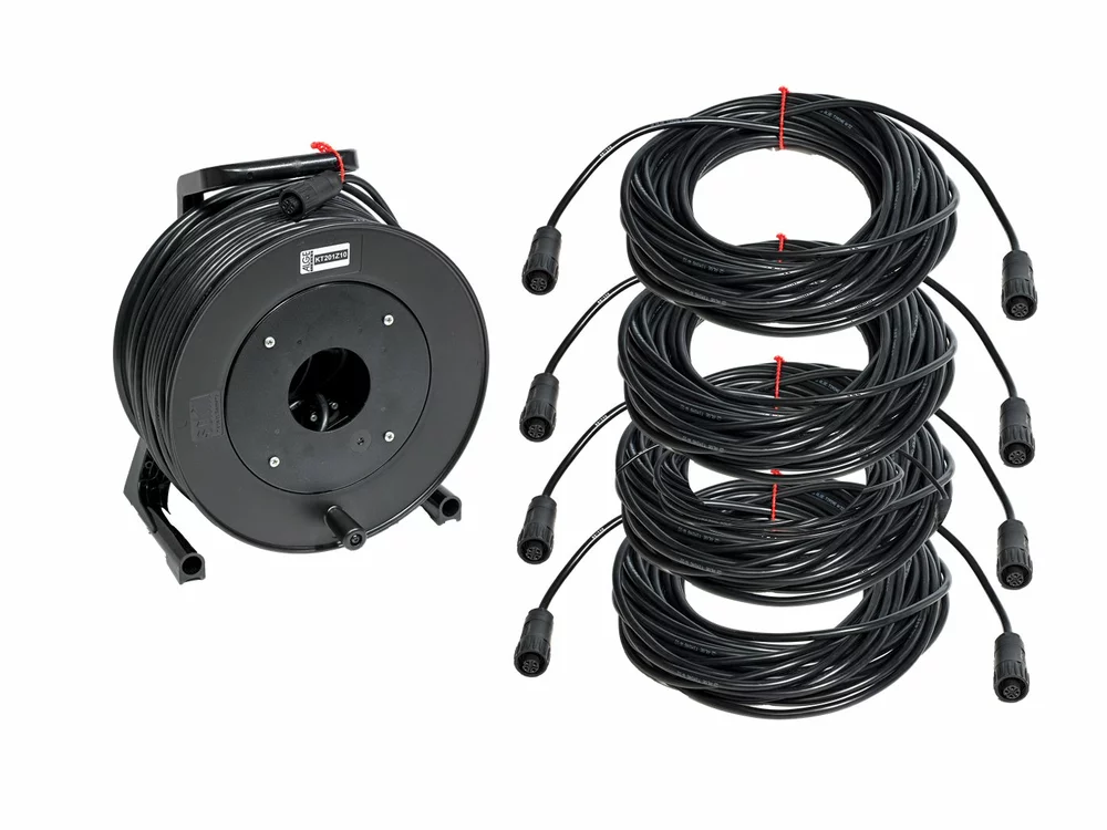 Cada conjunto incluye cables de alta calidad con conectores resistentes al agua y longitudes adaptadas a la disposición típica de las líneas de cronometraje.